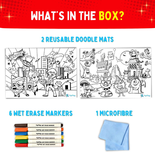 Doodle Placemats Travel Set – Superheroes & Monsters