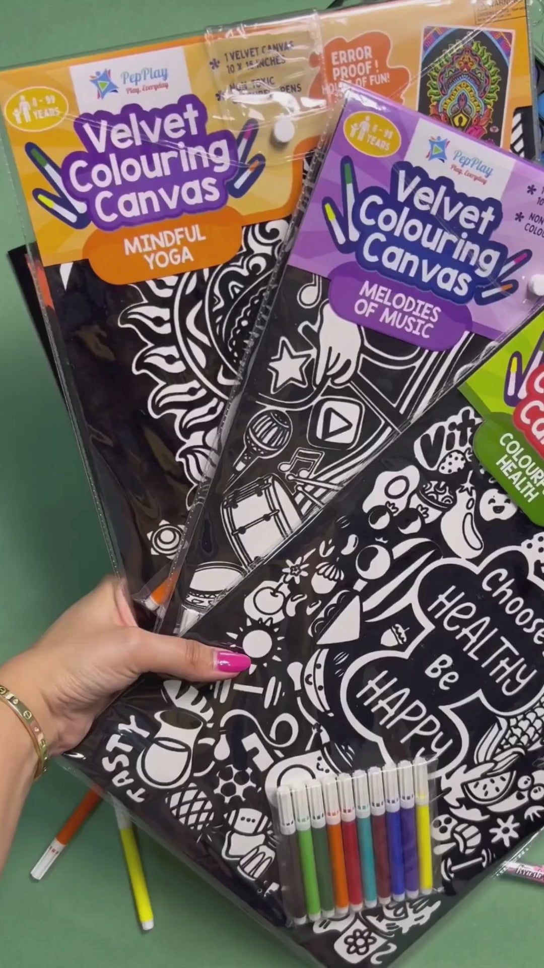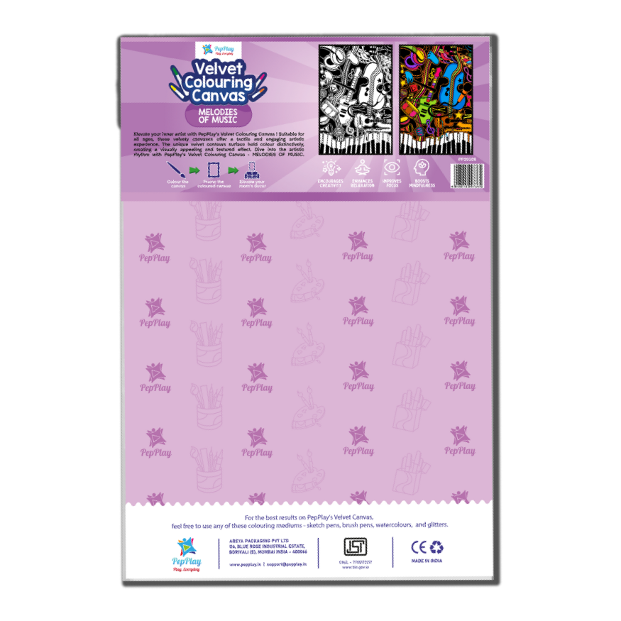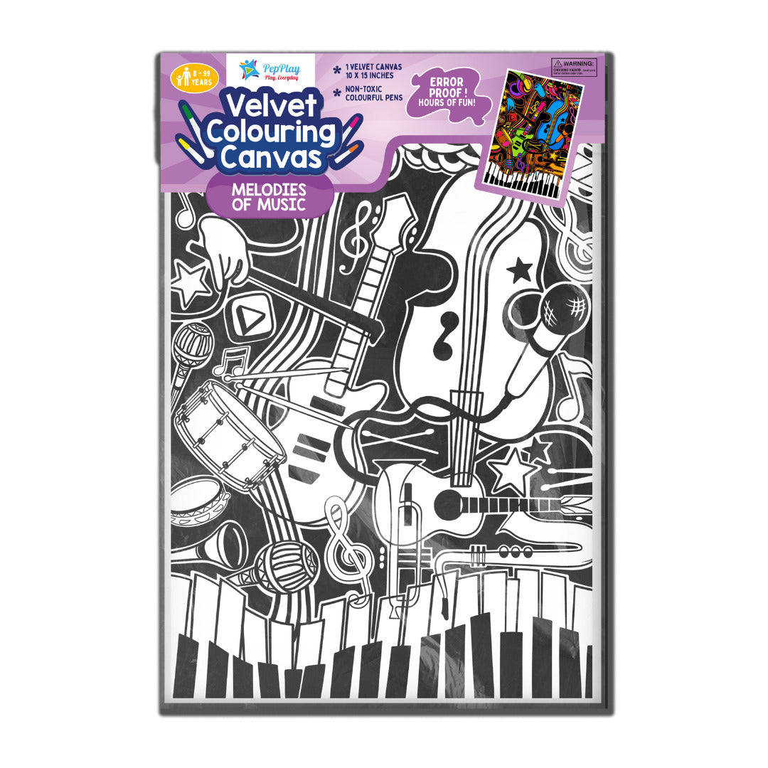 Let your creativity sing as you add vibrant hues to these beautifully detailed designs, creating your own masterpiece with PepPlay’s Velvet Colouring Canvas – Melodies of Music.