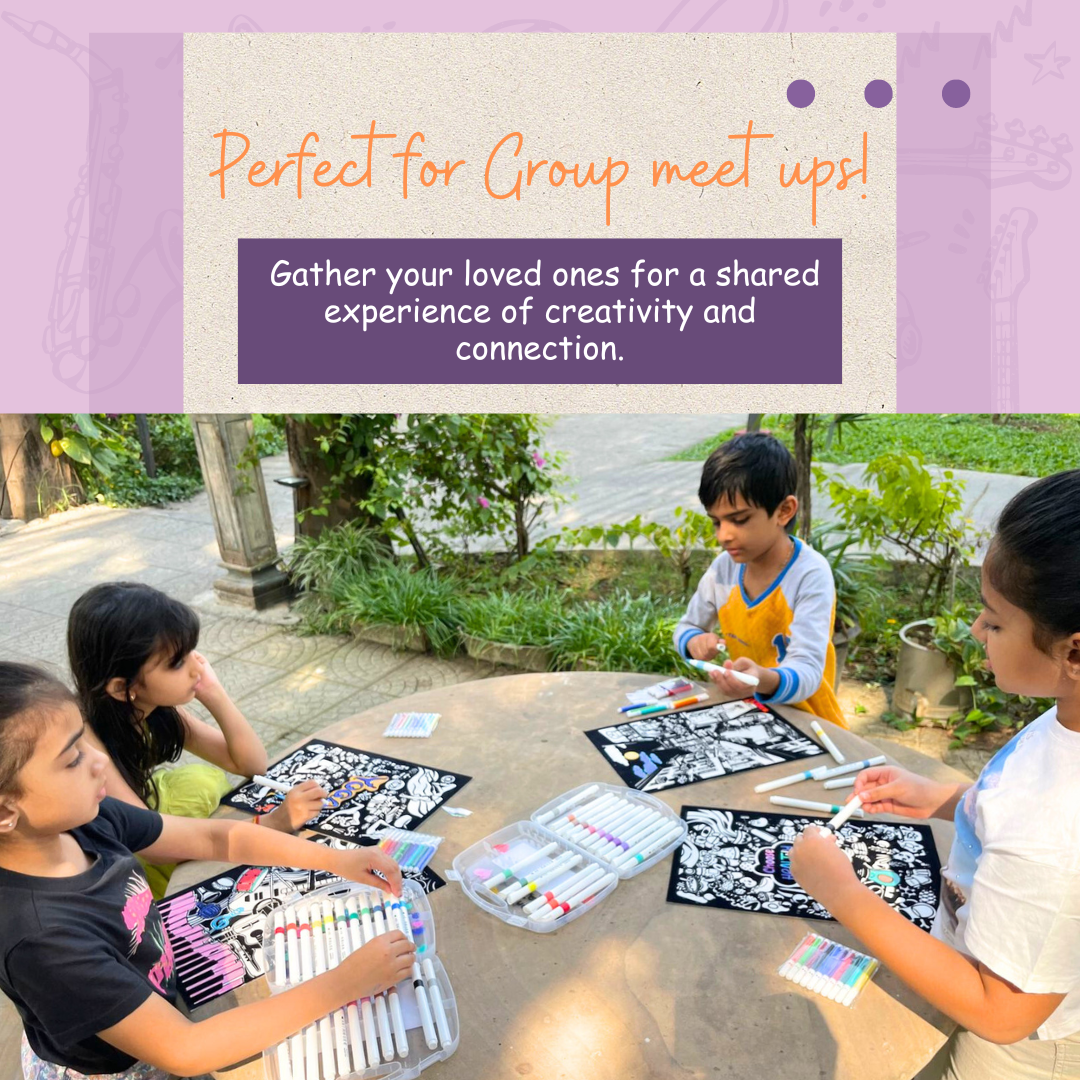 Team-Building Activity in Corporates: Encourage teamwork, creativity, and relaxation among colleagues by adding the Velvet Colouring Canvas – Melodies of Music into corporate events.